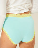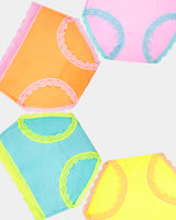 High Rise Knicker Four Pack in Neon Candy print finished with lace trim, packaged with love in a gift box.