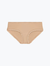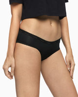 These low-rise hipsters feature delicate scallop trims around the waist and legs. This style is Global fit.