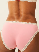 The Original Brief in Geranium Pink and Buttercream finished with lace trim, packaged with love in a gift box.