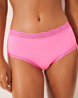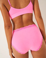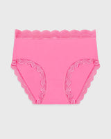 High Rise Knicker in Hot Pink finished with lace trim, packaged with love in a gift box.