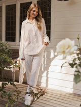 One of our most beloved winter fabrics, known for its softness and warmth, is back in a gorgeous forest green ditsy set! This set is the perfect balance of relaxed, classy, and comfy, making it ideal for everything from lounging to bedtime, day in and day out.