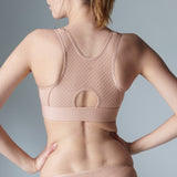 French supercoach Lucile Woodward has collaborated with Simone Perele to create this inspiringly glamorous sports range. The Harmony Wire Free Crop Top combines the allure of lingerie with the performance-focussed technicality of sportswear. Features inlaid rose gold thread, elastic lace and a sports cut for uncompromising support. Available in Black & Yogi Pink.