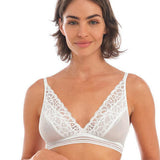 Carefully crafted with an artisanal finish, Wacoal's Raffiné Bralette in classic White combines decorative stretch lace on triangle cups with an elastic underband for added support and all-day comfort.