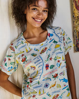 When comfort calls, our jersey PJs always answer. Made from soft organic cotton, the Aussie Road Trip Adult Organic Cotton Short Sleeve T-Shirt & Shorts Pyjama Set is breathable, lightweight, and just the right amount of slouchy. Featuring famous sights and Aussie delights on a white base, this set is perfect for slow summer mornings, post work lounging, and those cheeky weekend naps.