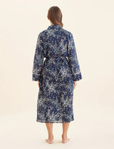 Our flattering 100% cotton maxi robe, now available in our navy Cherri Blossom print, is the perfect colour palette for a warm summer night. This robe breathes and moves with your body for maximum comfort.