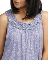 Stay cool and comfortable in this Wildflowers Sleeveless Nightie. Crafted from 100% cotton jersey with a beautiful wildflowers print, the mid-length design also features a ruffle trim on the neck panel for a feminine touch. Perfect for warm weather nights.