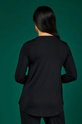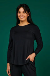 Cara will become a wardrobe essential as it is a long sleeve version of our great fitting Elbow Swing Tee. This style has a longer body length front and back with a soft, curved hemline.